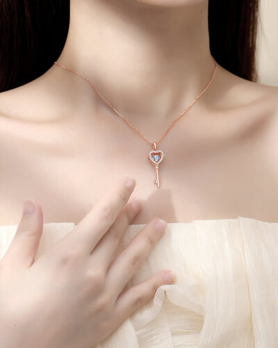 925 sterling silver key Moissanite Necklaces with unique key pendant design, exquisite pendant symbolizes the opening of happiness, and the moissanite inlaid in the center adds a dazzling glow!