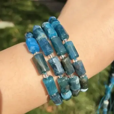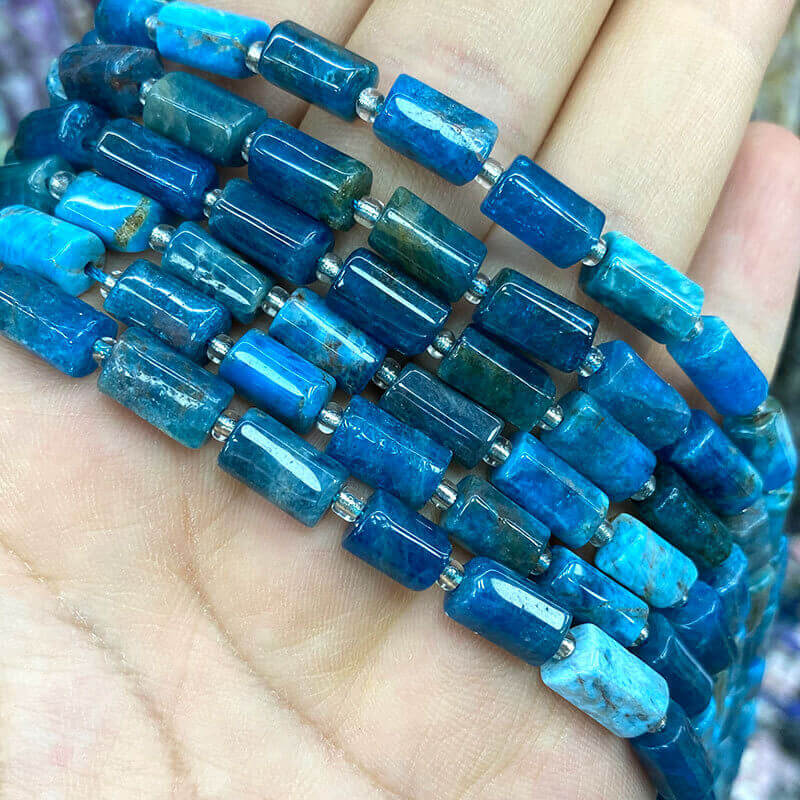 Doğal Mavi Apatit Sütun Değerli Taş Spacer Boncuk Toplu