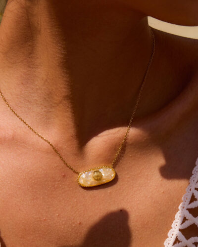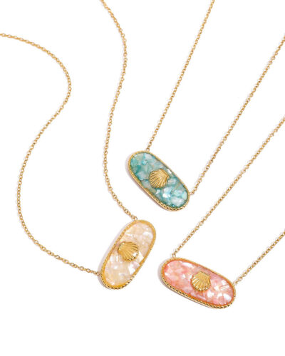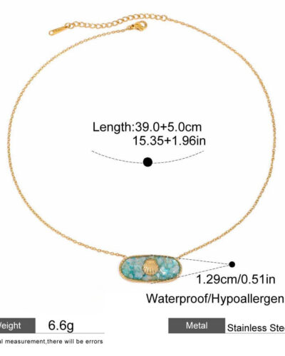Boho Tarzı Paslanmaz Çelik Deniz Kabuklu Oval Kolye