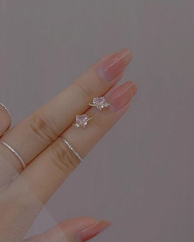 Satürn Halkası Tasarımlı Pembe Kalp Kadın Küpe