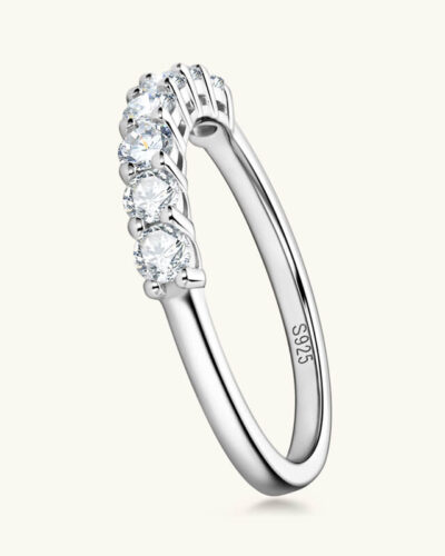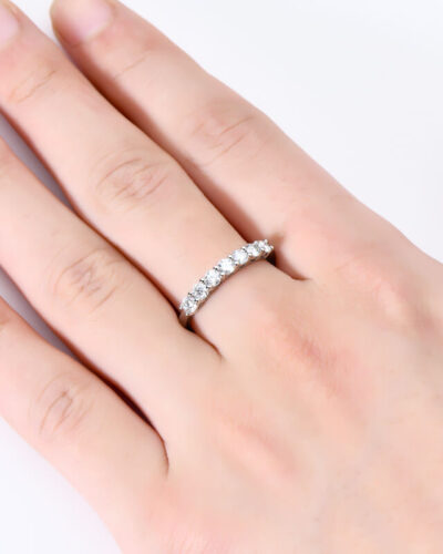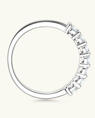 Discover the round moissanite wedding ring. It uses 7 round-cut Moissanite diamonds and is paired with a 925 sterling silver ring setting to shine like a diamond. No matter what the environment, our high-quality Moissanite can reflect a strong fire, making you the focus of attention!