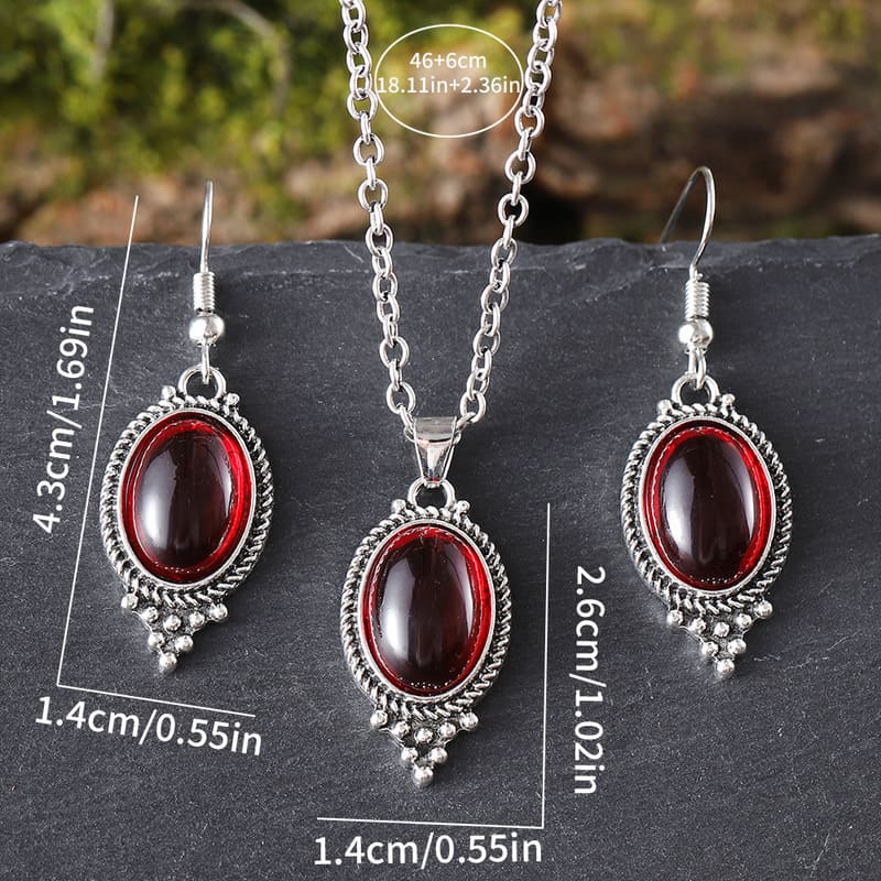 Retro Bohemian July Oval Ruby Vintage Necklace Earring