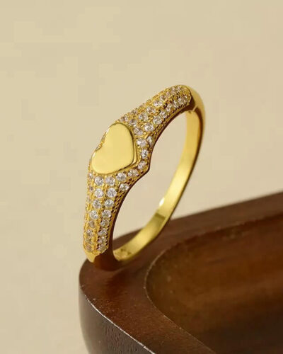 Pırlanta CZ ile Toplu Gümüş Kalp Yüzük