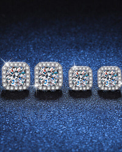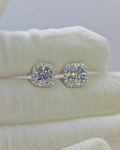925 Ayar Gümüş Kare Saplama Moissanite Küpe