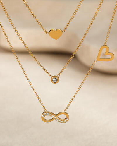 Sonsuzluk Kolyeli Paslanmaz Çelik Bayan Zinciri. Minimalist paslanmaz çelik zincir, sade ve yeni bir tasarımla sonsuzluk sembolü aksesuarları ve kalp şeklindeki aksesuarlarla eşleştirilmiştir. Üç boyutlu sonsuzluk sembolü bütünsel olarak oluşturulmuştur ve cildi çizmez.