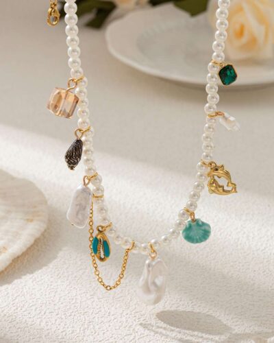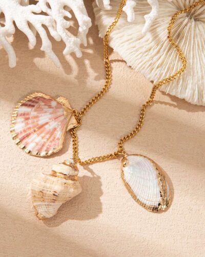 - This starfish and shell necklace combines various bohemian elements such as seashells and starfish. The marine motif makes it perfect for vacation outfits. Made of 304 stainless steel, it’s hypoallergenic.