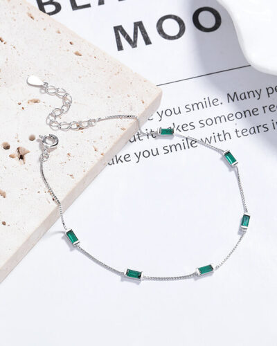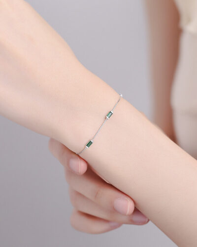 Kare Taşlı 925 Ayar Gümüş Kutu Zincir Bileklik