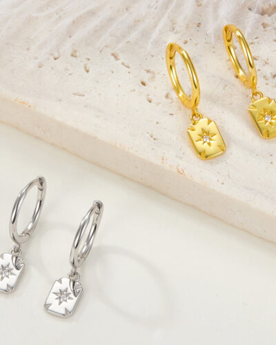 Kare 925 Ayar Gümüş Sallantılı Halka Küpe