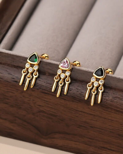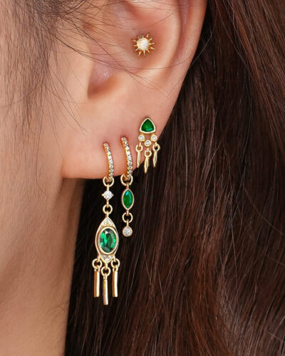Yeşil Zirkonlu Vintage 925 Ayar Gümüş Damla Küpe