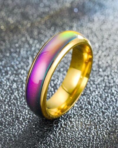 Thermochromic Stainless Steel Ladies Fashion Ring. Made with innovative temperature-sensitive color-changing material, this exquisite stainless steel ring is sure to be the center of attention no matter the occasion.