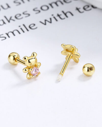 The cute tiny bear earring 925 sterling silver is embellished with pink diamonds in the center, which is a novel and exquisite design.