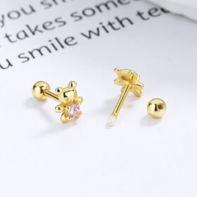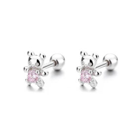 The cute tiny bear earring 925 sterling silver is embellished with pink diamonds in the center, which is a novel and exquisite design.
